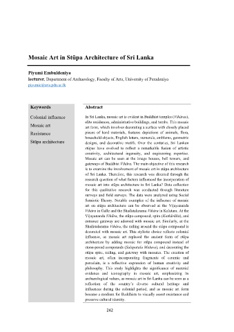 Mosaic Art in Stūpa Architecture of Sri Lanka